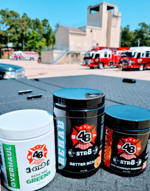 48Str8 was born in 2020 as a solution to a big problem. After purchasing a well-known brand of Pre-workout, John was called for a random urinalysis test, which are very common and pop up at any moment in the Fire Service. To his surprise, he had a false positive for METHAMPHETAMINE! A little-known ingredient, named DMHA, was in the pre-workout which also happens to be a main ingredient for Methamphetamine. That was the moment when he knew he had to create a solution for the problem of "dirty" supplements. Creating 2 Preworkout Lines for those of us “On-Duty”, those that are “Off-Duty” along with Hydration, Greens and an ever-expanding supplement line.